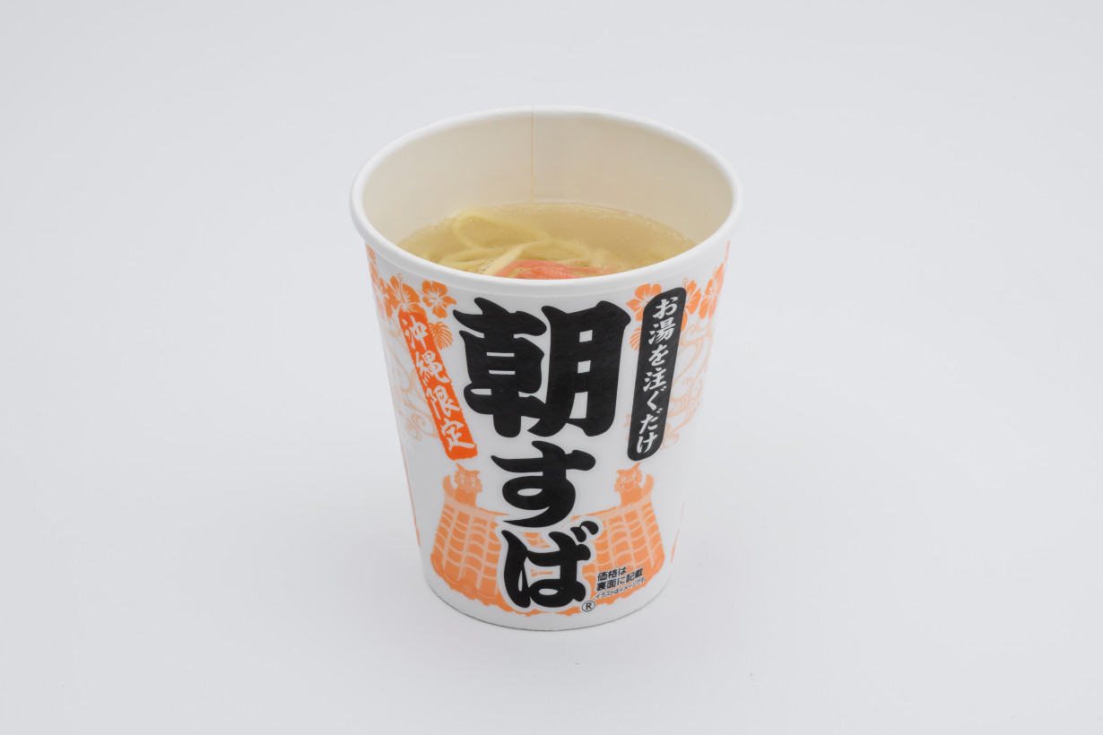 『朝すば』は、読んで字のごとく朝によく売れている商品です。この商品は「朝時間に、ちょっと気軽におにぎりと汁物で朝食を」というイメージで開発しています。今回は”簡便性の高さ”と”麺が美味しい沖縄そば”を合わせたいという思いから、『沖縄そば』同様に麺をリニューアル!お湯を入れて10回程度混ぜるだけで、お手軽に本格的な沖縄そばを召し上がっていただけます!