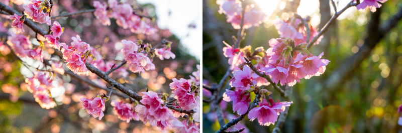 日中は沖縄の爽やかな空に映える、美しく鮮やかな寒緋桜をお楽しみいただけます。