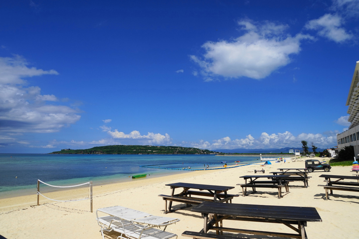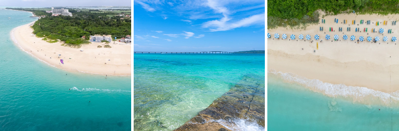 沖縄の海特有の抜群の透明度と、まばゆい白浜、そして抜けるような青空はリゾート気分を高めてくれますよね。