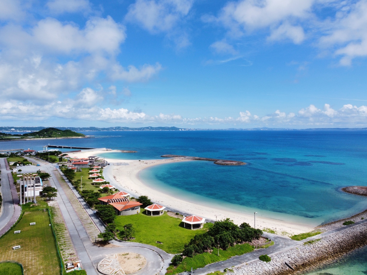 沖縄本島南部の糸満市にあり、空港や那覇市街からのアクセスが良いビーチです。バナナボートやシュノーケリング体験など多彩なアクティビティが魅力。一年中バーベキューを楽しめるので、ビーチパーティーを楽しみたい方にもオススメです。ビーチ内の壁にはインスタ映え抜群なウォールアートが描かれており、ご家族やご友人と一緒に写真を撮って楽しむこともできます。