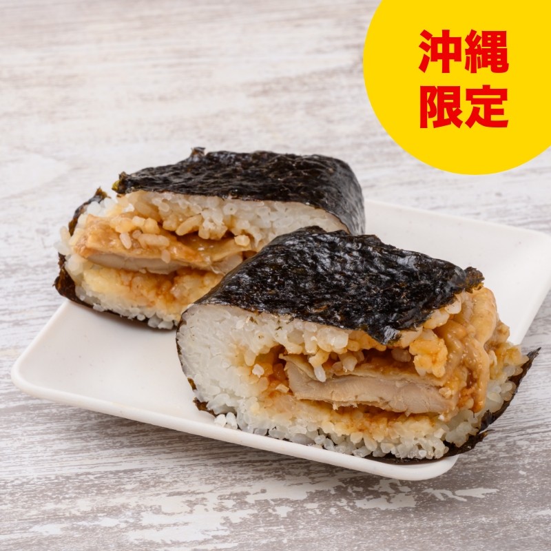 テリヤキチキンをサンドした食べ応えのあるおむすび。チキンは塩こうじなどで下味をつけジューシーに焼き上げ、てりやきだれは沖縄で好まれる旨味と甘みのバランスがよい味わいに仕上げました。