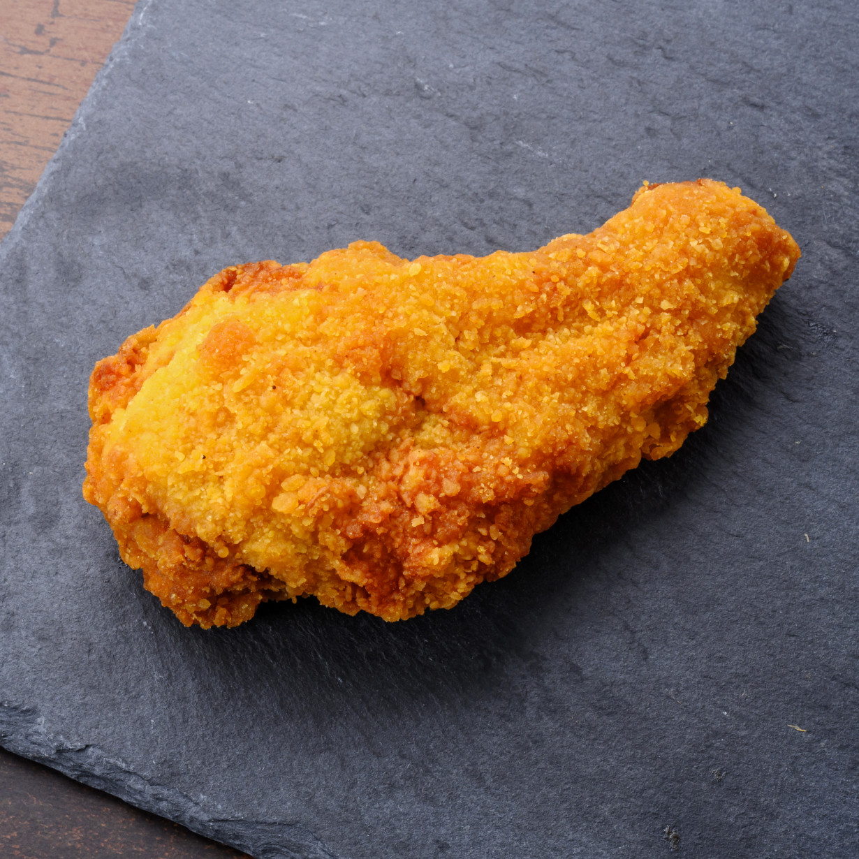 沖縄県民の好みに合わせた旨味の効いた味付けの骨付きフライドチキンです。