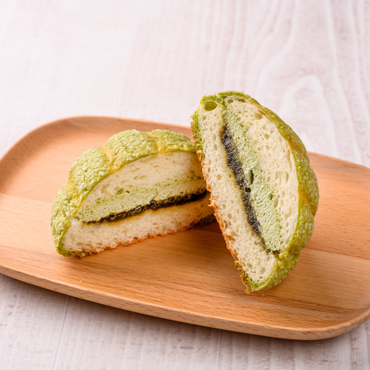 宇治抹茶を加えたビスケット生地のメロンパンに、
