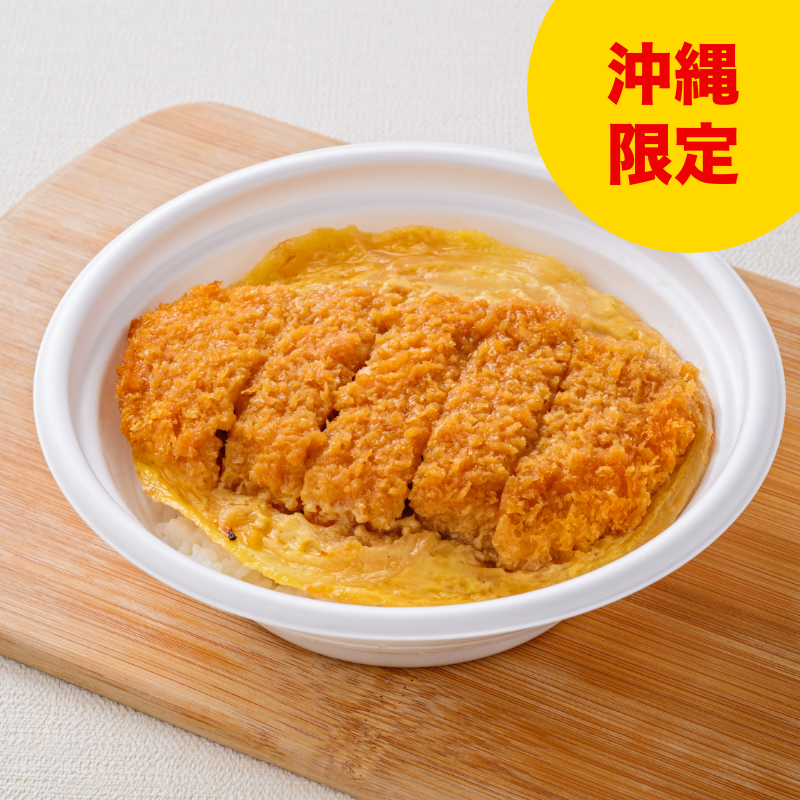 雪平鍋で1食ずつ卵とじにしたこだわりのかつ丼。とんかつはホワイトペッパーを下味に加えてうちなーんちゅ好みの味付けに仕立てました。