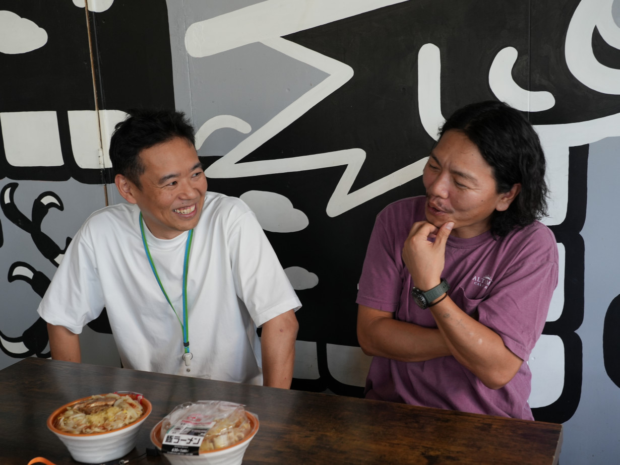 今回のコラボ商品を通して、沖縄ファミリーマート店舗がある石垣島・宮古島など離島の方にも『豚ラーメン』を召し上がっていただける機会があるのはとても嬉しいですね。「食べる」って、純粋に楽しみであったり喜びであったりすると思うので、楽しみながらニコニコわいわい食べてもらえたらと思います。今回のコラボ商品を気に入ったら、ぜひ店舗にもお越しください!トッピングや背脂マシマシなども楽しめます。味には自信がありますので、ぜひ!