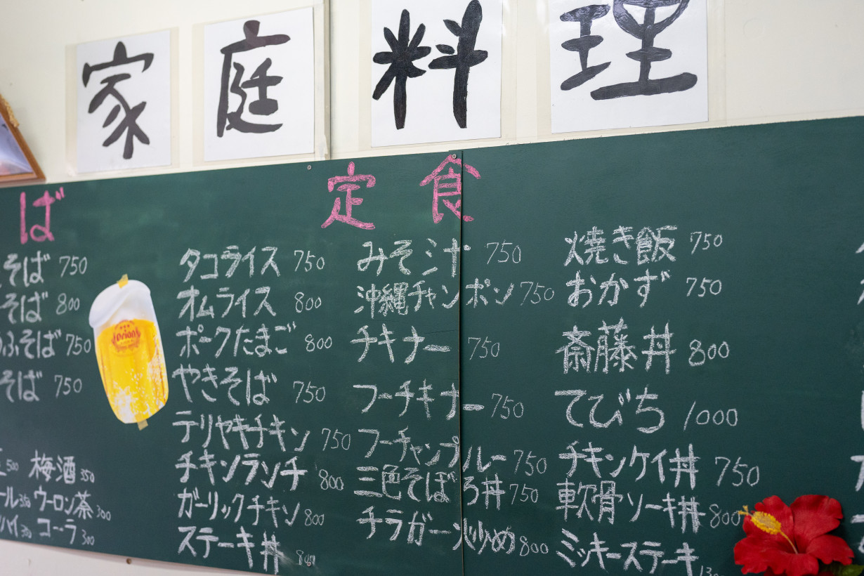 「あ、なんだかコザ(沖縄市)っぽい!」と思わせてくれるビジュアルの食堂です。