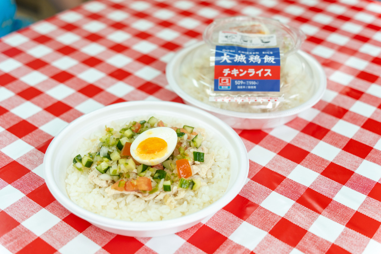 今回、大城鶏飯さんと開発した『チキンライス』は一度食べるとハマること間違いなしな商品です。沖縄ファミリーマートで『チキンライス』を食べたら、お店にも食べに行ってもらえたらなと思います。コザの街の新しい看板グルメ、『チキンライス』を楽しんでください!