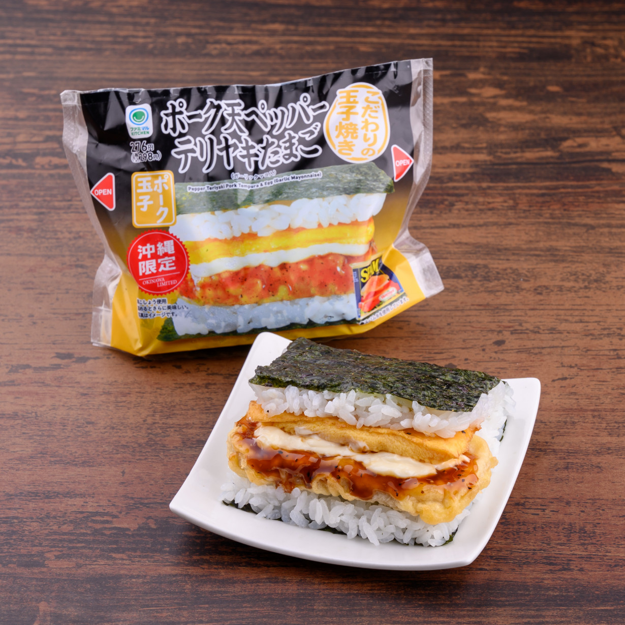今週のおすすめは「ポーク天ペッパーてりやきたまご」です。市場で馴染みのあるSPAM天をおむすびに仕立てました。塩味の効いたポークとパンチのあるペッパーテリヤキソースが食欲を掻き立てる仕立てです。