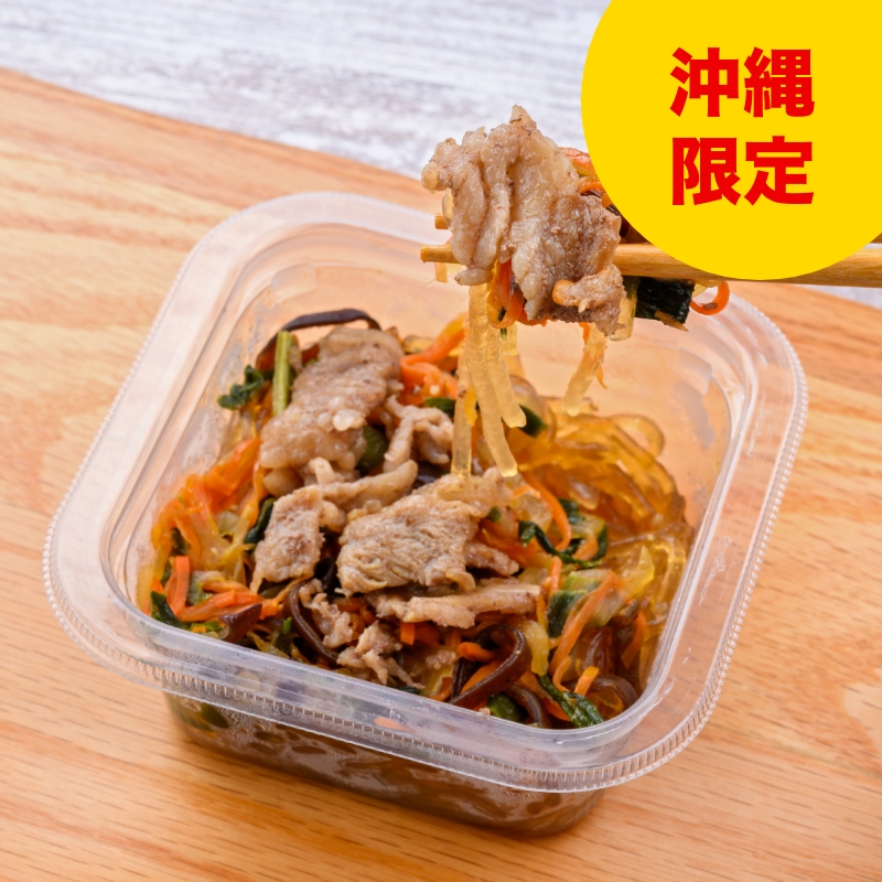 春雨炒めと野菜炒めに牛肉をトッピングした、温めておいしいちょいデリです。