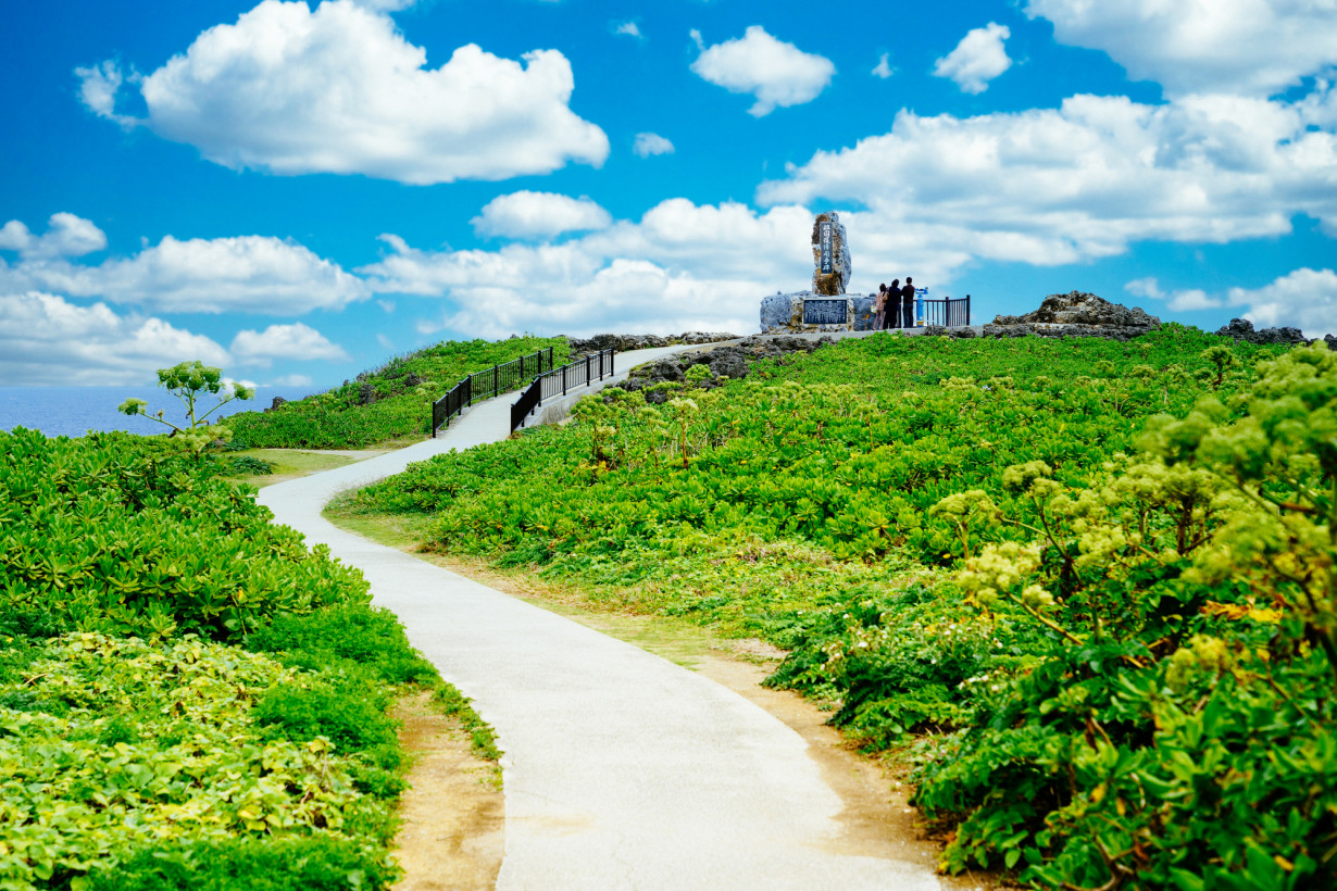 沖縄本島最北端の辺戸岬(へどみさき)は、やんばるの中でも特に人気のある観光地です。岬からは大海原と美しい断崖絶壁を一望でき、特に夕日が沈む時間帯は絶景スポットとして親しまれています。