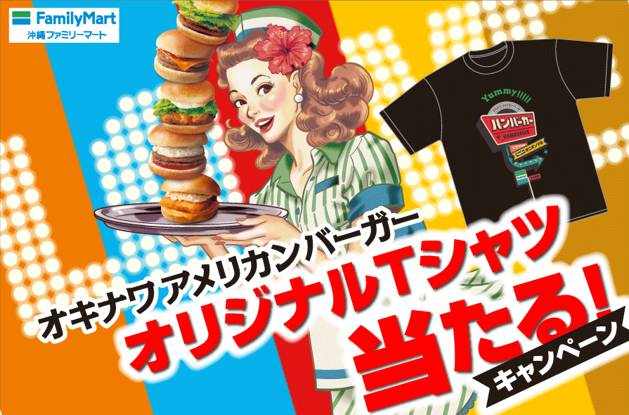 オキナワアメリカンバーガー オリジナルTシャツ当たる!キャンペーン!