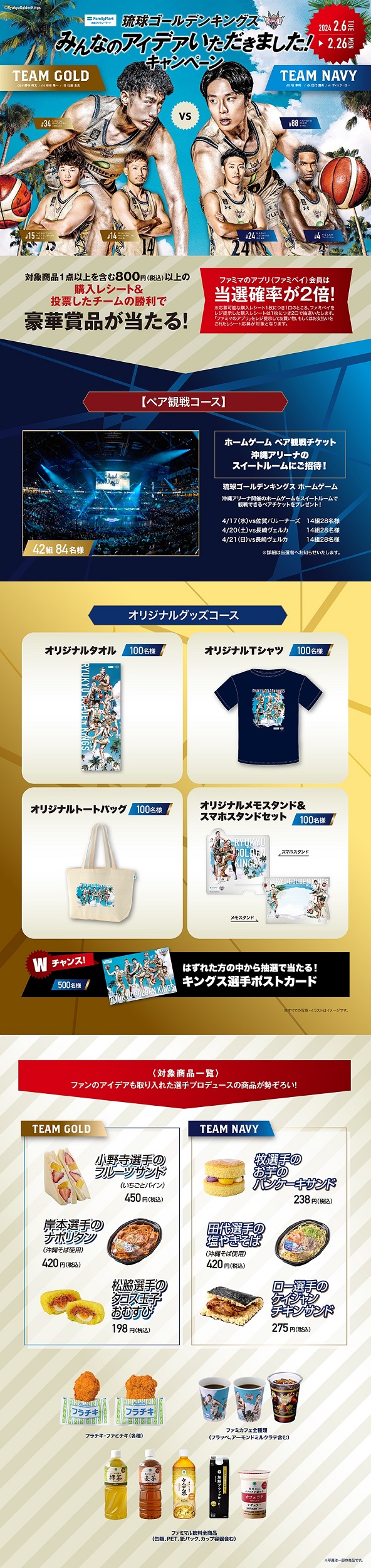 キャンペーン期間中に沖縄県内のファミリーマートにてお買い上げいただいた対象商品1点以上を含む購入レシート(合計金額が800円(税込)以上の購入レシート)を1口として、応募WEBサイトまたは郵便にてご応募ください。※ファミペイアプリ内の電子レシートでの応募はできません。